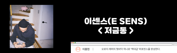 이전처럼 촘촘한 유기성이나 확실한 주제 의식은 없다. 감동을 유발하는 자기 서사도, 삶을 돌아보게 하는 철학적인 언어도 양이 부족하다. 그럼에도 이센스는 여느 때보다 여유롭게 또다시 한번 누구도 따라오기 힘든 큼직한 발자국을 남긴다. 랩. 오로지 래퍼의 혓바닥 하나로 '역대급' 퍼포먼스를 완성한 < 저금통 >이다.