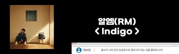 예술성과 대중성 가운데의 조율은 쉬운 듯 쉽지 않다. 솔로 음반 < Indigo >가 나왔을 때 대중과 평단이 모두 즉각 반응한 것은 그 어려운 걸 RM이 아주 매끄럽고 완숙하게 해냈기 때문이다. 평소 알려져 있듯 그림과 문화를 사랑하는 취향을 드러내고 그사이 소담한 일상의 풍경과 아티스트로서 겪는 외로움, 불안함을 가감 없이 털어내는 적극성은 음악 앞에 한 아티스트가 얼마나 솔직할 수 있는지를 보여주는 대목. 수많은 시선이 본인에게 쏠려 있는 것을 알면서도 타인이 아닌 자신이 하고 싶은 것을 제멋대로 써냈다.