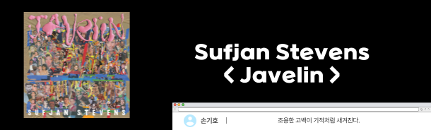 스스로를 철저히 파헤치며 드러낸 < Javelin >은 그렇기에 슬프지 않다. 상실에 대한 절망과 고뇌, 사랑을 담은 생경한 토로는 아티스트의 인생을 요약하듯 잔잔히 시작하여 날카로운 전자음과 풍부한 화성, 오케스트라 등으로 환희와 격정을 맞이하고 이내 고요하게 갈무리된다. 마치 자체가 거대한 메시지인 것처럼, 특별한 이해를 구하지 않고 흘러가는 이별일지를 매개로 마음이 마음을 관통한다. 비극적 결말의 형태는 모두 다르지만 그 끝에 기다리는 건 다시 찾아올 희망이다. 위로할 수 있음에 우리의 삶은 찬란하다고. 수프얀 스티븐스의 조용한 고백이 기적처럼 새겨진다. (손기호)