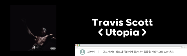 힙합을 들으며 척박한 삶의 터전을 딛고 생동하는 약자의 문화를 느끼는 건 이젠 아련한 경험이다. 자본의 힘을 입어 음악적 경계는 아득히 넓어졌고, 그렇게 영역을 확장하다 다른 유형의 음악과 닿고 나면 힙합은 힘을 자랑하듯 스타일을 집어삼키며 더욱 거대해졌다. 트래비스 스캇의 < Utopia >는 이렇게 덩치가 커진 장르의 중심에서 일어나는 일들을 상징적으로 드러내는 음반이다. 힙합 50주년, 소수자의 하위문화는 어느새 거대한 산업이 되었다.