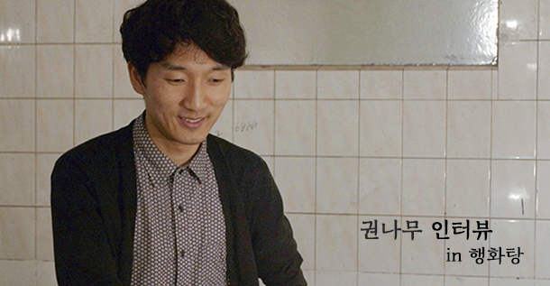 권나무는 반듯하게 기계로 도려내진 원목이 아니다. 나무의 까칠까칠한 질감과 딱딱한 껍질까지 두루 갖췄다. 알루미늄에선 느낄 수 없는 '온기'와 플라스틱에선 찾을 수 없는 '견고함'이 목소리에 담겨있다. 그는 꾸며지거나 부풀려지지 않은 있는 그대로의 이야기, 나이테처럼 촘촘한 철학들을 풀어놓았다. '물', '사랑은 높은 곳에서 흐르지'는 물에서 태어난 노래라고 한다. '물'과 관련된 음악들을 이제는 물이 '없는' 행화탕에서 권'나무'와 이야기를 나누었다.