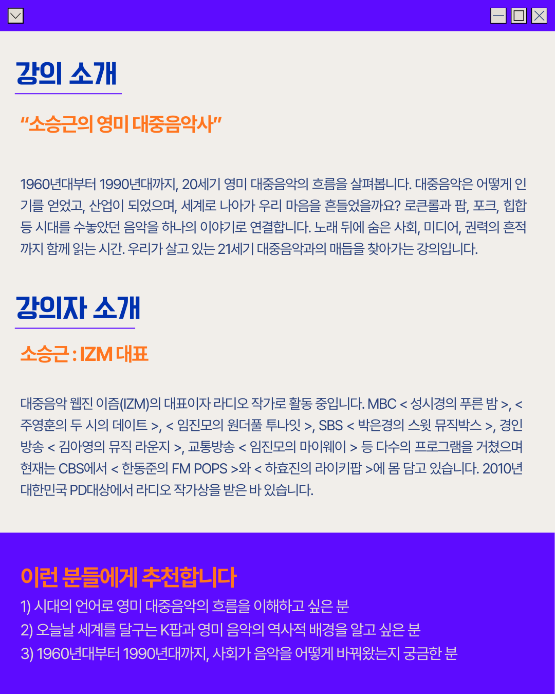 2026 IZM Music Academy #3 ㅣ소승근의 영미 대중음악사